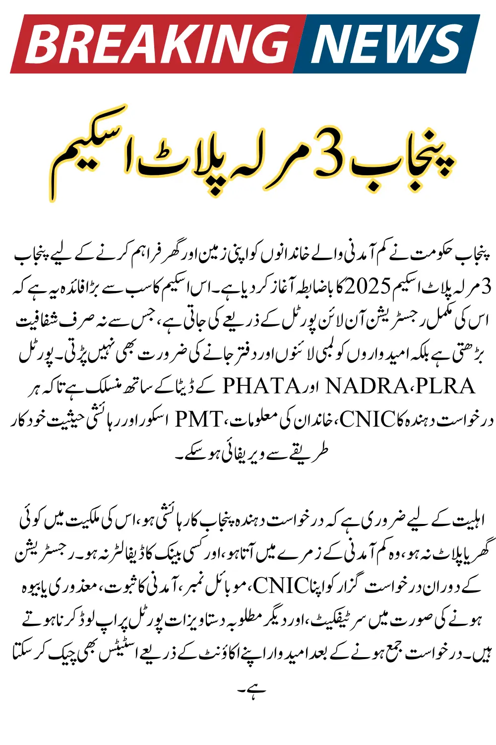 3 Marla Plot Scheme Eligibility Criteria